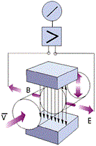 E=KBdu ▲,式中E-电极间的信号电压,V■★;K为系数•-;B为磁通密度,T;d为测量管内径◆★,m▽◇;u为平均流速,m/s□;式中,K、d为常数,由于励磁电流是恒流的,故B也是常数□▲,则由E=KBdu可知,体积流量Q与信号电压E成正比★●…,即流速感应的信号电压E与体积流量Q成线性关系。因此,只要测量出E…□○,就可确定流量Q,这是电磁流量计的基本工作原理。
